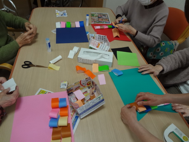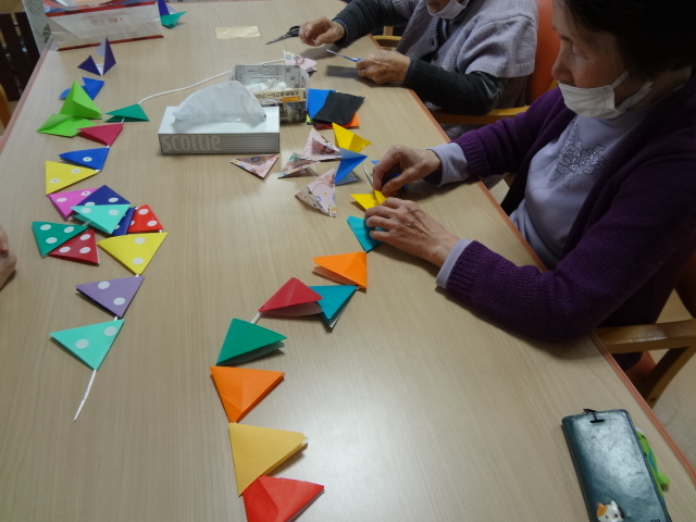 折り紙でガーランド👍を作成したり